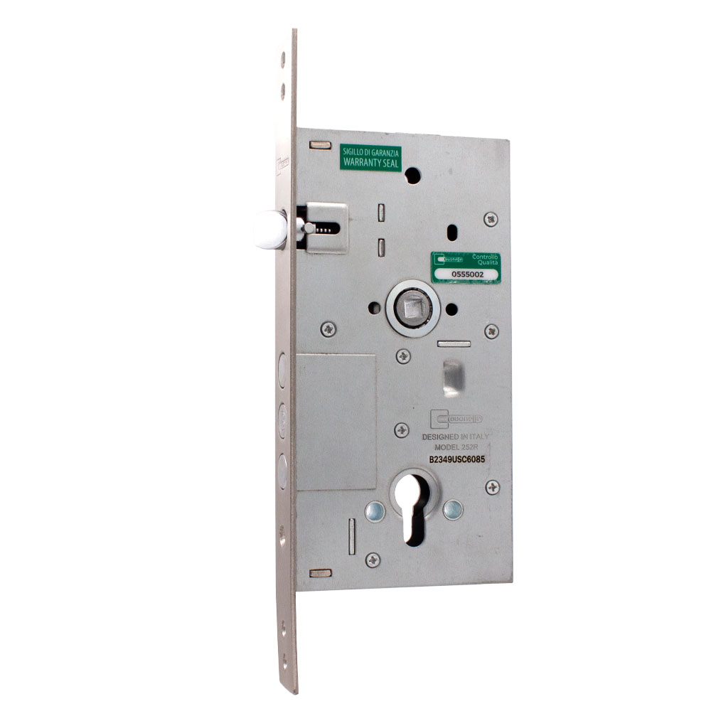 Buonelle B2349USC6085 lock mechanism with protector, 3 bolts, for cylinder inter center distance 85mm, chrome